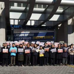 미국발 관세전쟁과 통상압력에 대해 무리하게 협상에 나서고 있는 한덕수 대통령 권한대행과 최상목 경제부총리를 규탄하는 기자...