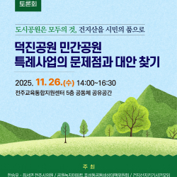 전주시 덕진공원 건지산 일대의 민간공원 특례사업을 둘러싼 논란이 이어지는 가운데, 사업의 문제점과 대안을 논의하는 정책토...