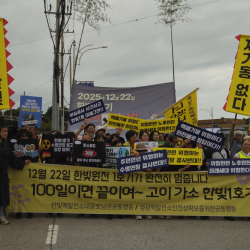 한빛 1호기 영구정지 선언문 오늘 우리는, 꼬박 40년을 아슬아슬 버텨온 한빛 1호기의 수명이 다했음을 선언하기 위해 이 자리에...